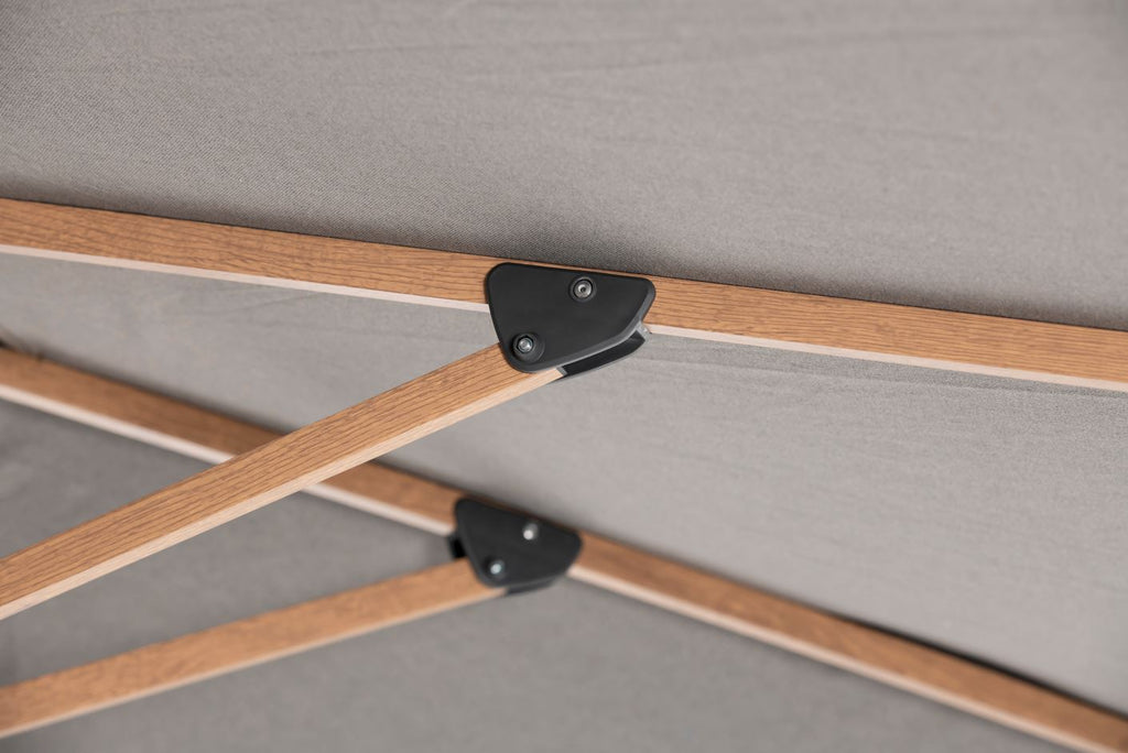 Umbrella Canopies are made in NOVASUN® fabric, with a 3-year fade warranty, this fabric is mold & mildew resistant and blocks 98% of UV rays. Please note canopies are water-repellant, NOT waterproof. Aluminum frame in Faux Wood finish with tilt feature side to side, back tilt, & 360 degree rotation. Umbrella frame includes a 1 year warranty (excluding weather damage).